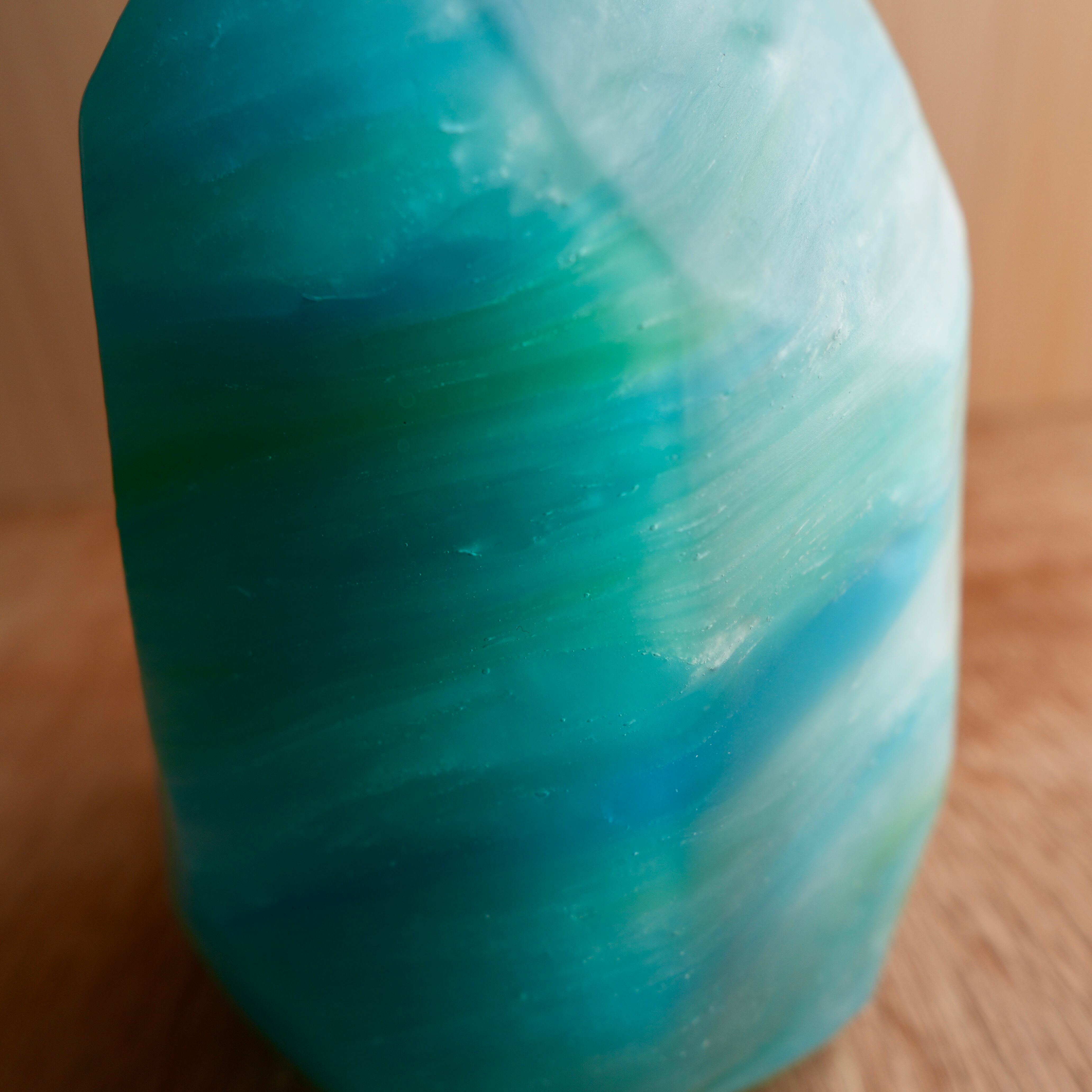 おだやかな瀬戸内の海に、力強く浮かぶ磯をイメージしたキャンドルです。瀬戸内の海は穏やかですが、磯まわりは速い潮の流れがあったりします。そんな潮の流れを、沢山の色を重ねて表現しています。