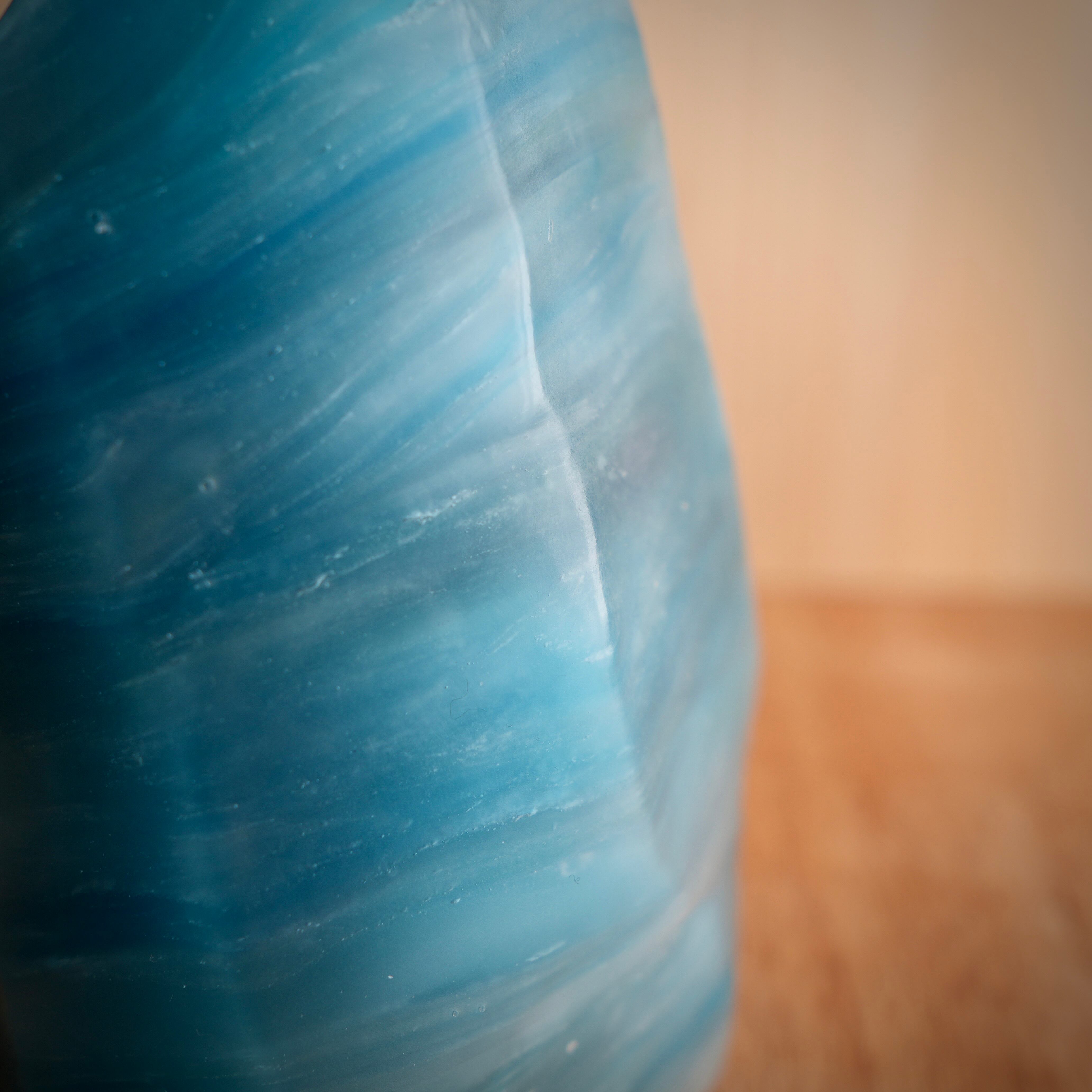 おだやかな瀬戸内の海に、力強く浮かぶ磯をイメージしたキャンドルです。瀬戸内の海は穏やかですが、磯まわりは速い潮の流れがあったりします。そんな潮の流れを、沢山の色を重ねて表現しています。